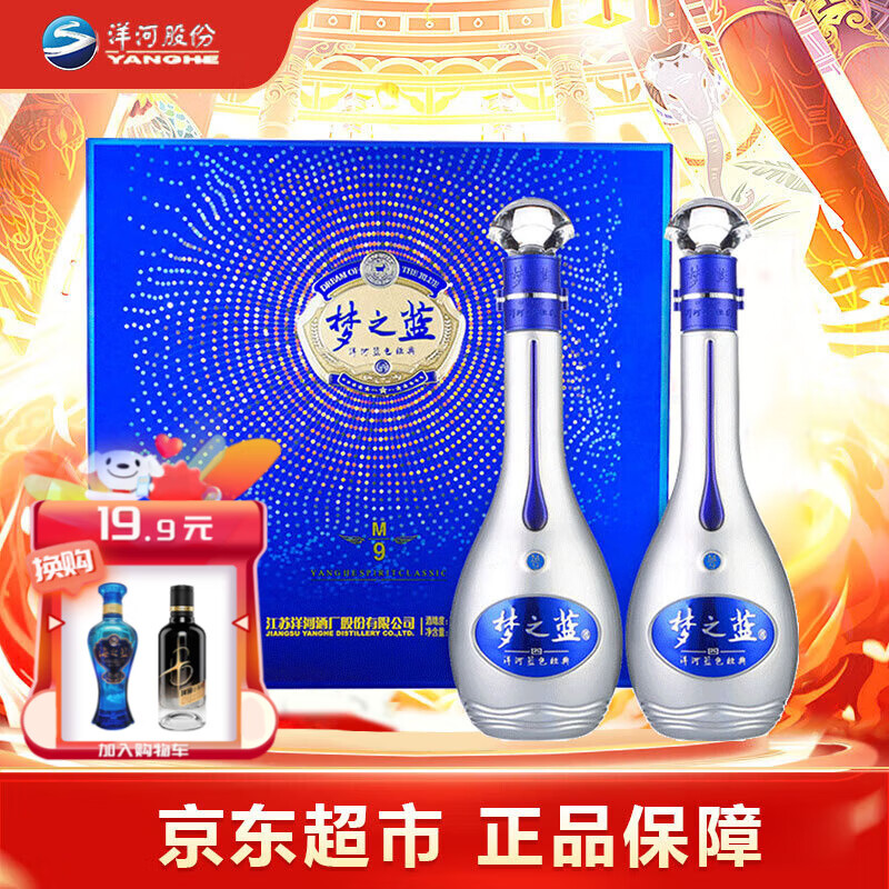 洋河 梦之蓝蓝色经典 口感绵柔浓香型高度白酒 送礼佳品礼盒 52度500ml*2 M9礼盒装价格:3768.00元!