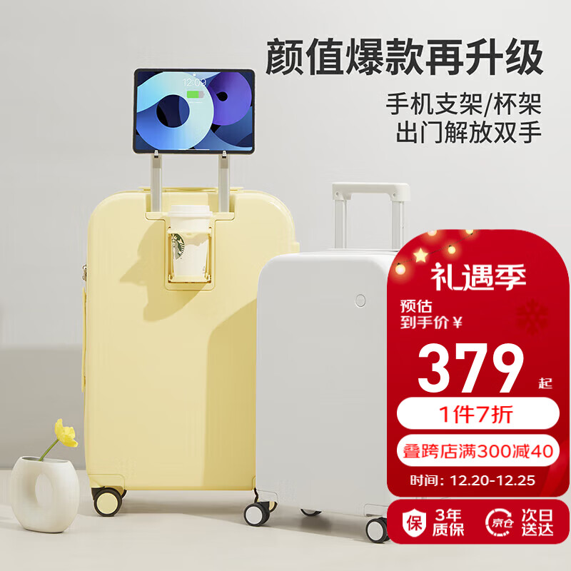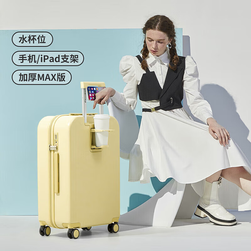 米熙多功能拉杆箱子行李箱大容量密码箱男高颜值旅行箱女24英寸云雀黄价格:599.00元!