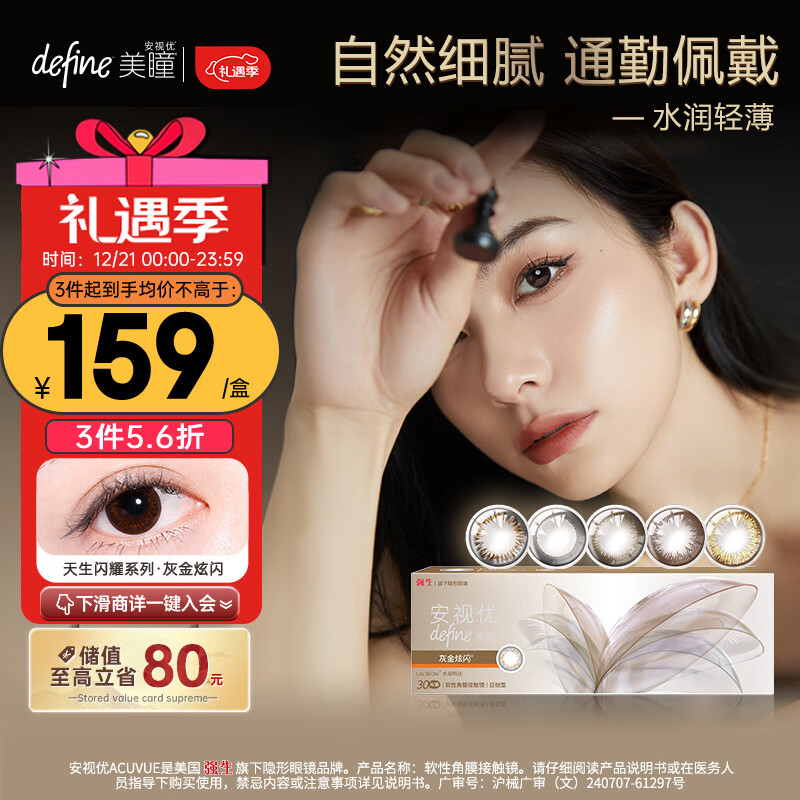 强生(Johnson) 美瞳 隐形眼镜 美瞳日抛 安视优 水凝胶30片装 经典灰金炫闪色 650度价格:288.00元!