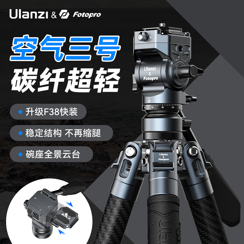 ulanzi优篮子空气三号F38碳纤维三脚架富图宝联名款液压全景云台便携户外快装快拆数码相机摄影三角架价格:928.00元!