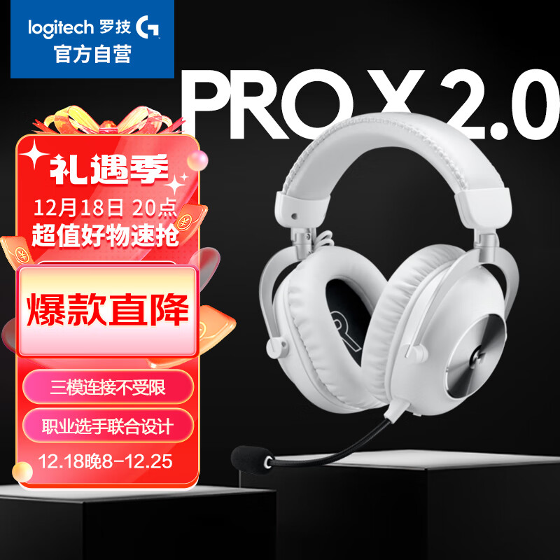 罗技(G)PRO X 2.0 LIGHTSPEED无线头戴式游戏耳机 职业选手联合设计 环绕声 降噪麦克风 吃鸡 白 A00181价格:1999.00元!