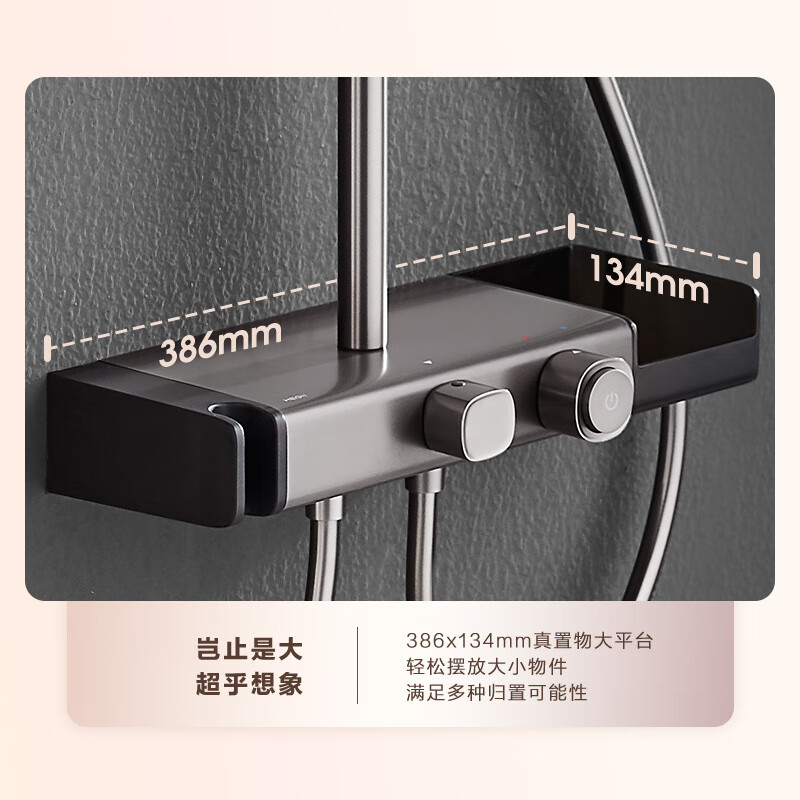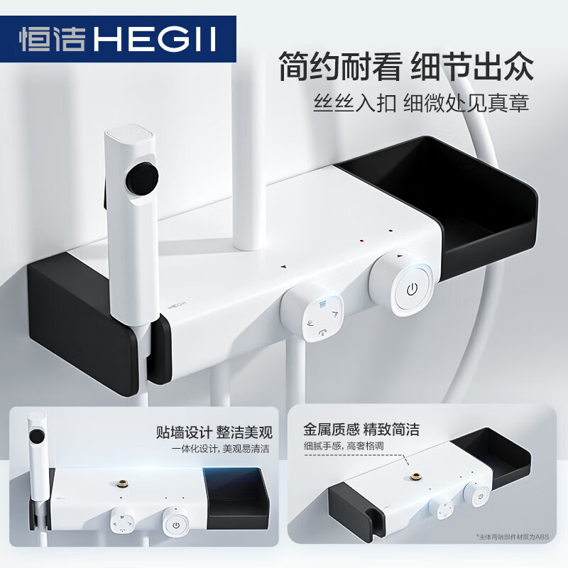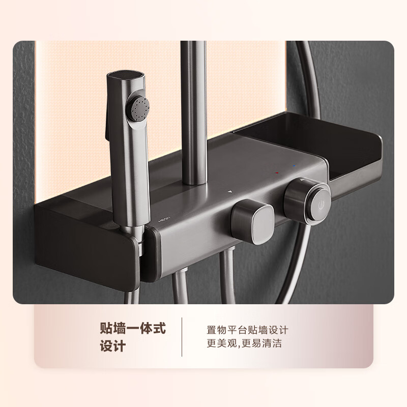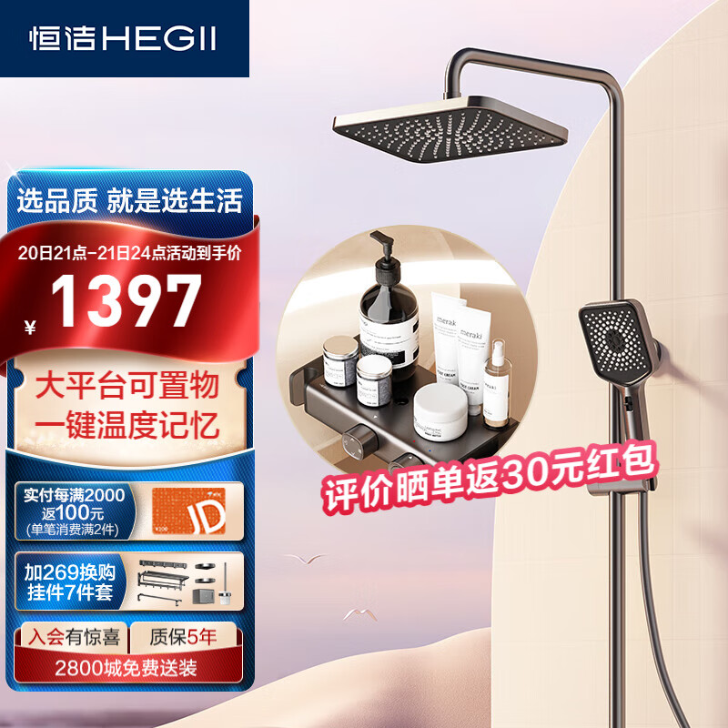 恒洁(HEGII)淋浴花洒套装 方形置物枪灰色增压除垢花洒全套HMF917-333D-SN价格:1397.00元!
