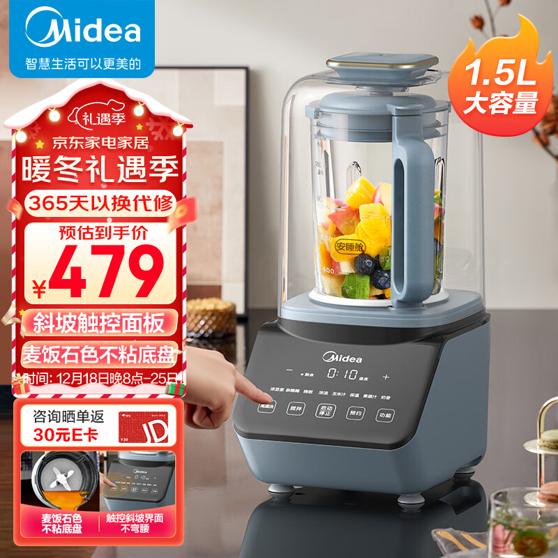 美的(Midea)1.5升低音破壁机大容量家用豆浆机降噪静柔音榨汁料理机MJ-BL80SJ52价格:699.00元!