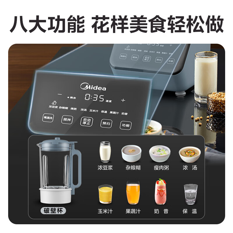 下面笔者为大家介绍美的MJ-BL80SJ52,使用感受还不错的,早就听说了美的破壁机很好用,双十一下单没有犹豫,选的静音的声音小很多,打的很细,从此开启养生的生活,可以预约打很多种。