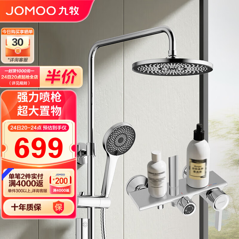 九牧JOMOO 花洒淋浴套装置物喷枪易洁大顶喷满天星36614-778/1B-1价格:1099.00元!