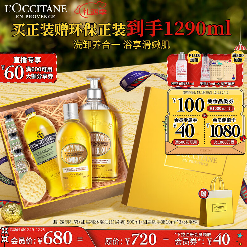 欧舒丹甜扁桃紧致沐浴油(250ml+500ml)套装礼盒保湿滋润男女友圣诞礼物价格:720.00元!