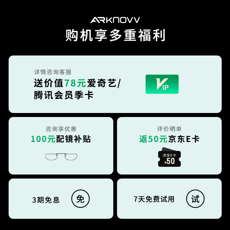 ARknovv A1 智能眼镜 深度融合AI的AR眼镜 可调节电致变色便携XR眼镜 非VR眼镜一体机 经典黑色 小号戒托套装价格:2988.00元!