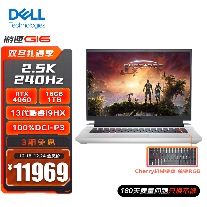 戴尔(DELL)新游匣G16 13代酷睿16英寸大屏游戏本7630笔记本电脑高性能高色域电竞屏 13代酷睿i9/4060/240Hz/机械键盘/白 官方标配价格:11999.00元!