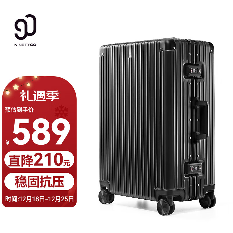 90分PC旅行箱轻质铝框行李箱防刮大容量拉杆箱26英寸托运箱曜石黑价格:649.00元!