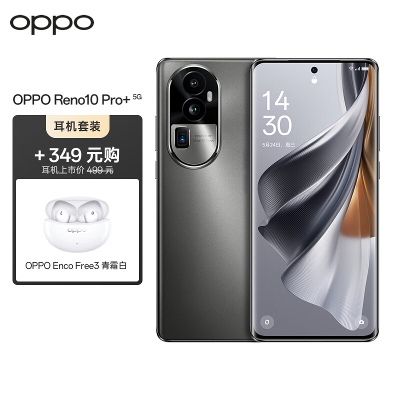 OPPO Reno10 Pro+ 16GB+256GB 月海黑 骁龙 8+ 旗舰级超光影潜望长焦 5G手机【Enco Free3 青霜白套装】价格:4248.00元!