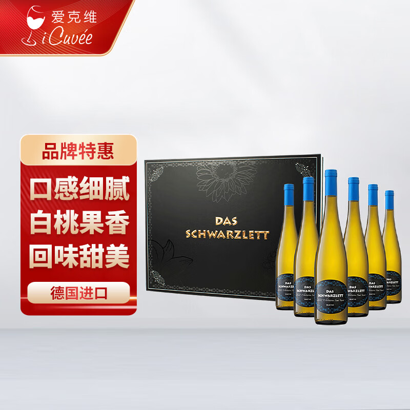 爱克维(iCuvee)黑蕾精选半甜白葡萄酒 750ml*6瓶带包装 德国原瓶进口价格:688.00元!