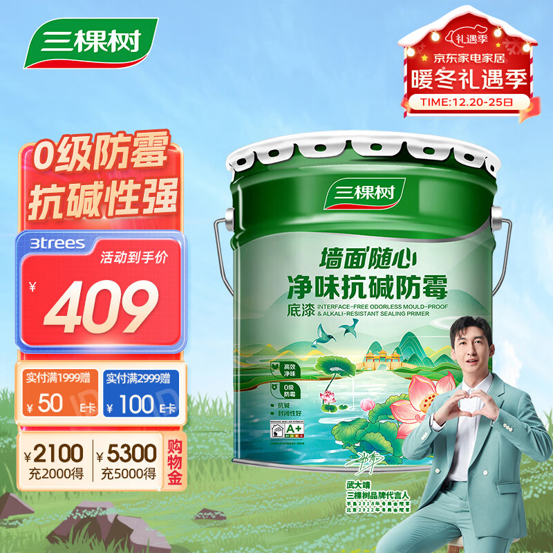 三棵树漆内墙乳胶漆底漆墙面随心净味抗碱防霉底漆油漆涂料白色 15L价格:454.44元!