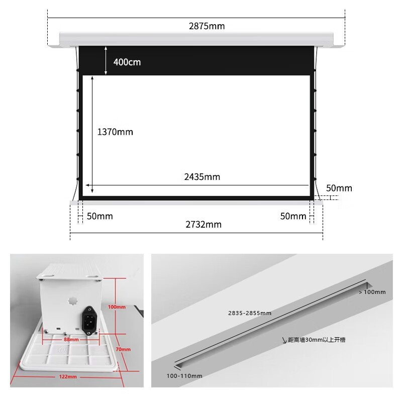 鲸米(JINGMI)嵌入式投影幕布T7pro纳米8K黑晶抗光110英寸16:9隐藏式天花幕布ai智能语音电动拉线家用屏幕价格:3899.00元!