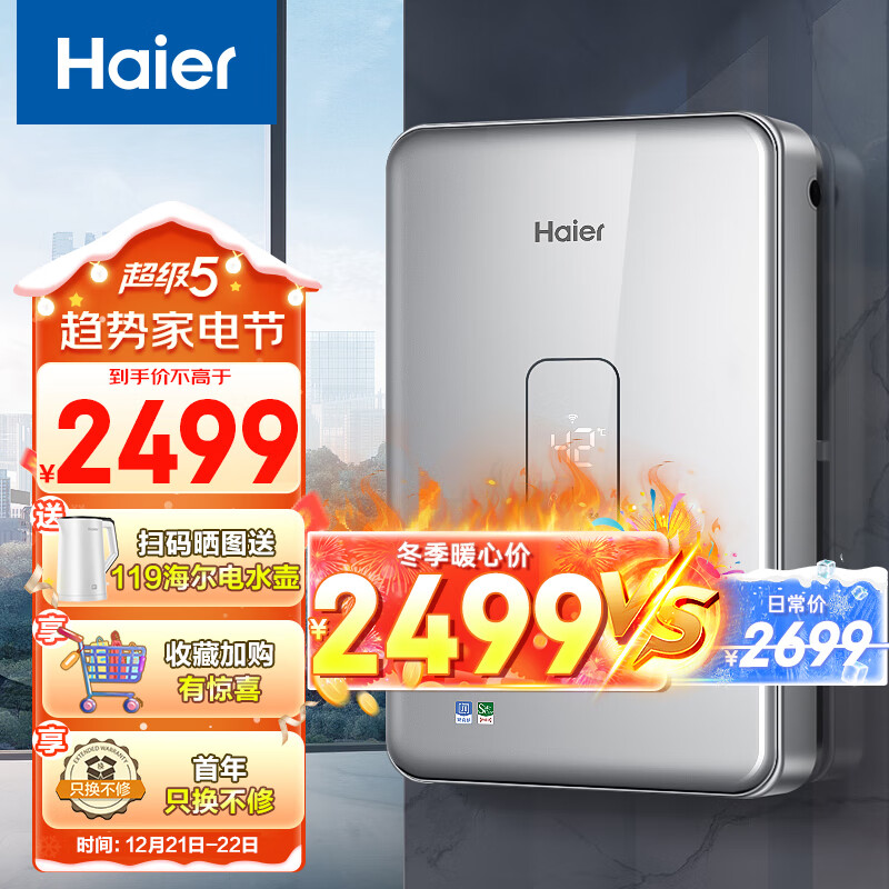 海尔(Haier)电热水器即热式即开即热水电双变频恒温AI智能家用速热专利防电墙赠增压花洒DSH-85V3(U1)价格:2499.00元!