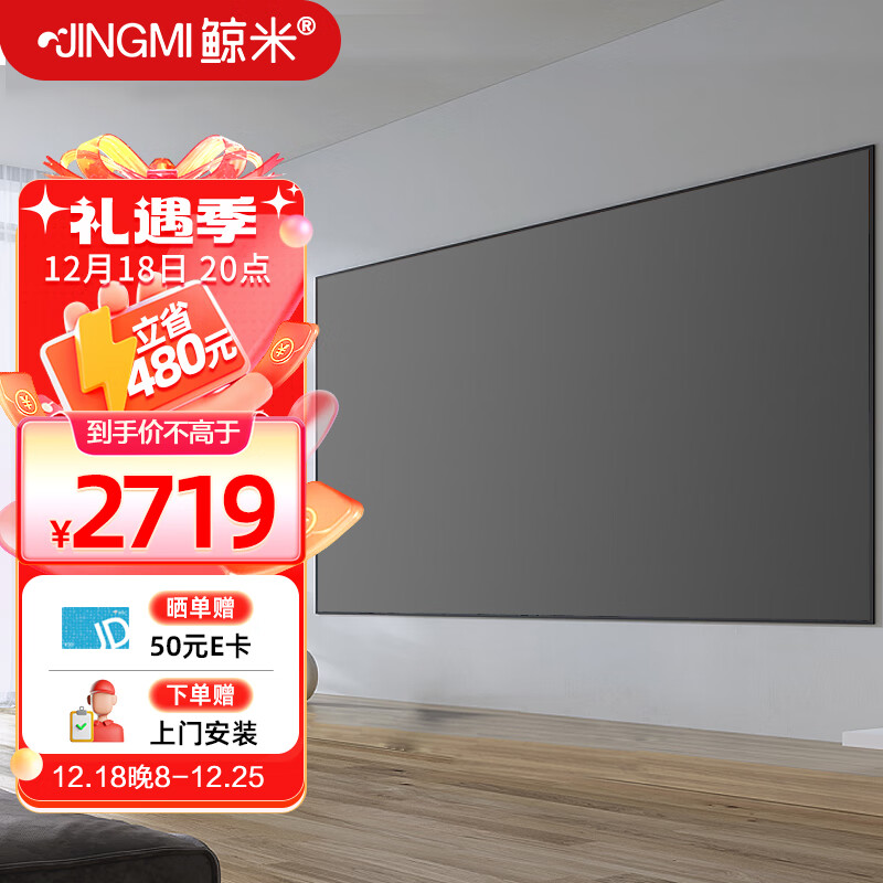 鲸米(JINGMI)80英寸16:9菲涅尔抗光硬屏K8中长焦投影仪光学抗光幕布超窄边画框家用办公投影机屏幕价格:3199.00元!