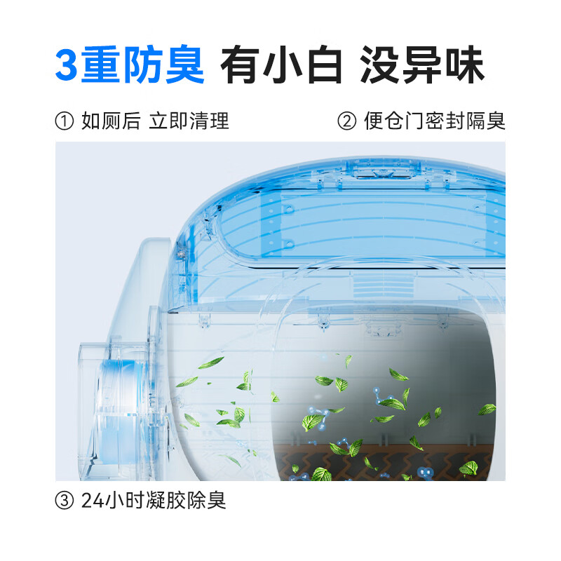 功能:软便模式,感应模式,一键换砂,可拆洗,专属净味器,自动清理,AI多猫识别