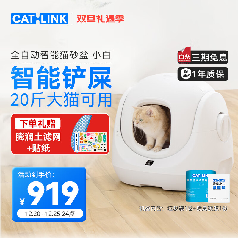 CATlink智能全自动猫砂盆小白 电动铲屎机全封闭式隔臭猫厕所价格:1199.00元!