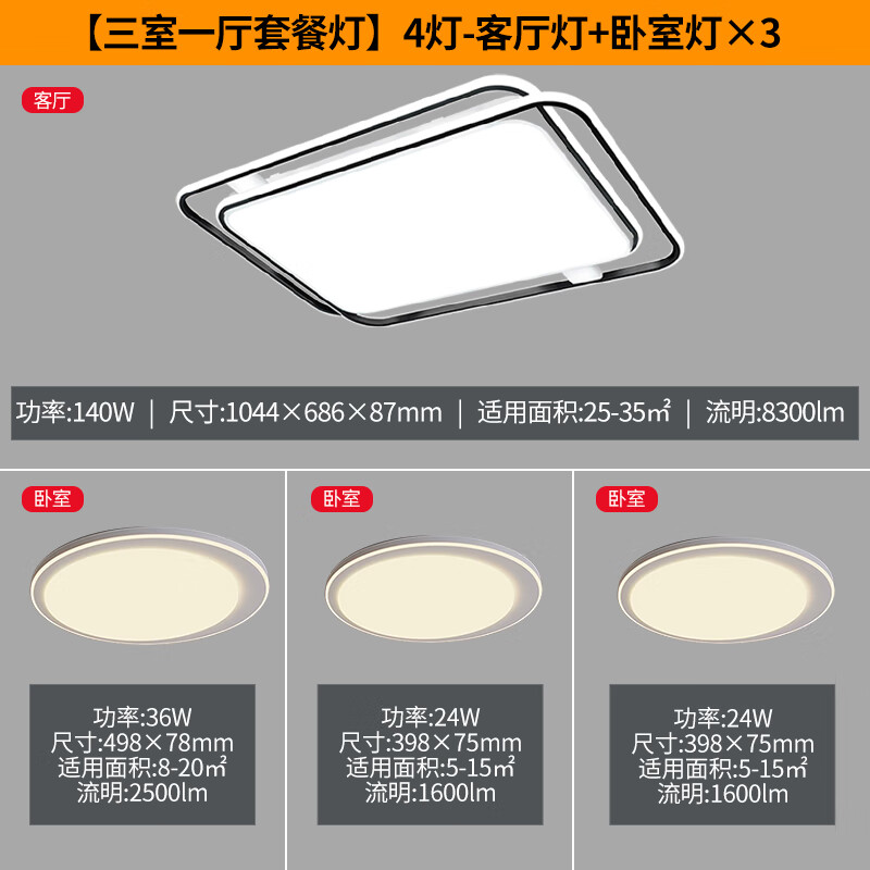 飞利浦(PHILIPS)led吸顶灯客厅灯餐厅卧室灯智能调光灯饰灯具套餐三室一厅 悦璃价格:3449.00元!