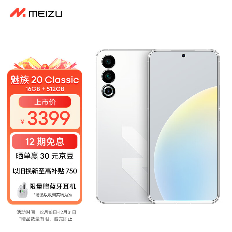 Meizu魅族20 Classic 骁龙8Gen2 Flyme系统 144Hz电竞直屏 5G游戏学生拍照 魅族20C 余生白首 16+512GB价格:3399.00元!
