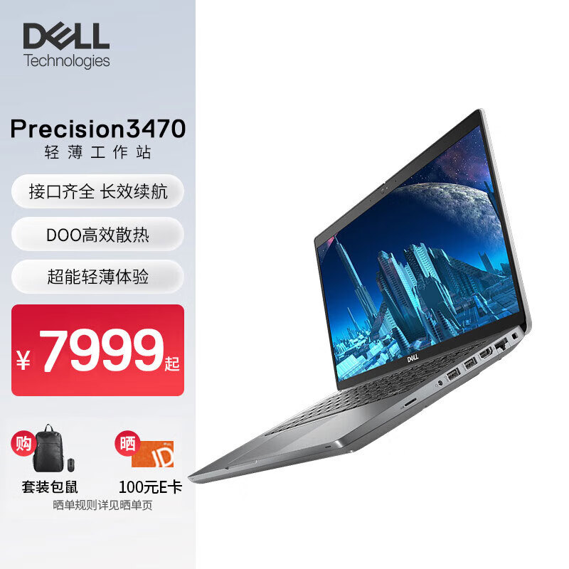 戴尔(DELL)Precision3470战斧14英寸高性能设计师图形移动工作站笔记本i7-1260P 16G 1T固态 T550 4G 3年上门价格:7999.00元!