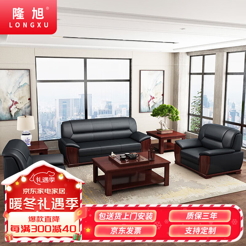 隆旭 办公家具办公沙发茶几组合办公室简约会客接待沙发商务皮沙发 牛皮3+2+1价格:6650.00元!