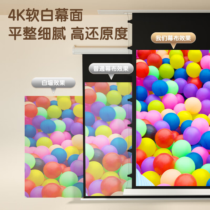 3、这款幕布非常好,安装,收纳非常简单,稳定性也非常好,投影非常清晰,支持4k高清,颜色表现非常丰富,对比度也非常好,直追电影院的效果!!!