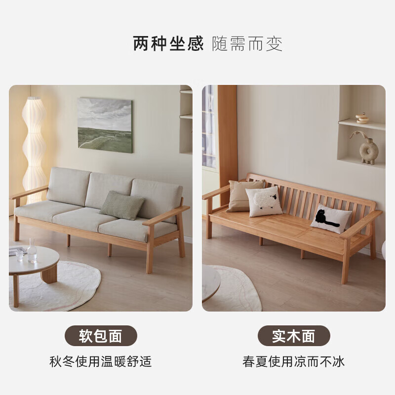 3、沙发实木材质,款式简洁,冬夏两用的功能非常实用,特别是夏天去掉坐垫之后非常宽大,冬季配上坐垫也很舒适,关键是对小户型客厅太友好了。特别说下京东购买后发货很快,到货后的安装也是快速上门,购物体验好(省心省时省力)!