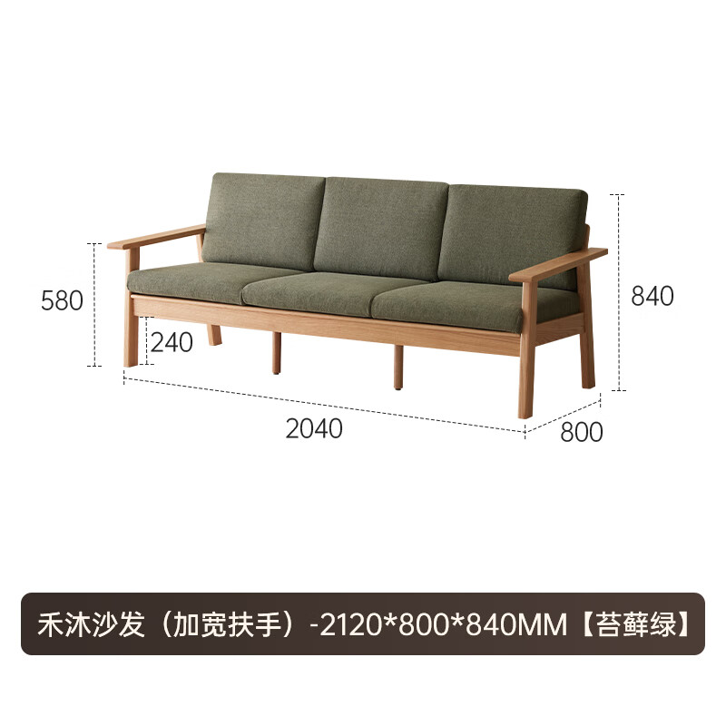 原始原素实木沙发小户型客厅家具北欧橡木简约冬夏两用三人位沙发苔藓绿价格:3466.00元!