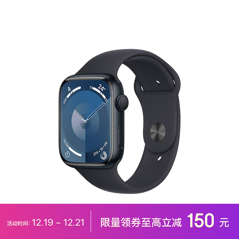 Apple Watch Series 9 智能手表GPS款45毫米午夜色铝金属表壳 午夜色运动型表带S/M 健康手表S9 MR993CH/A价格:3199.00元!