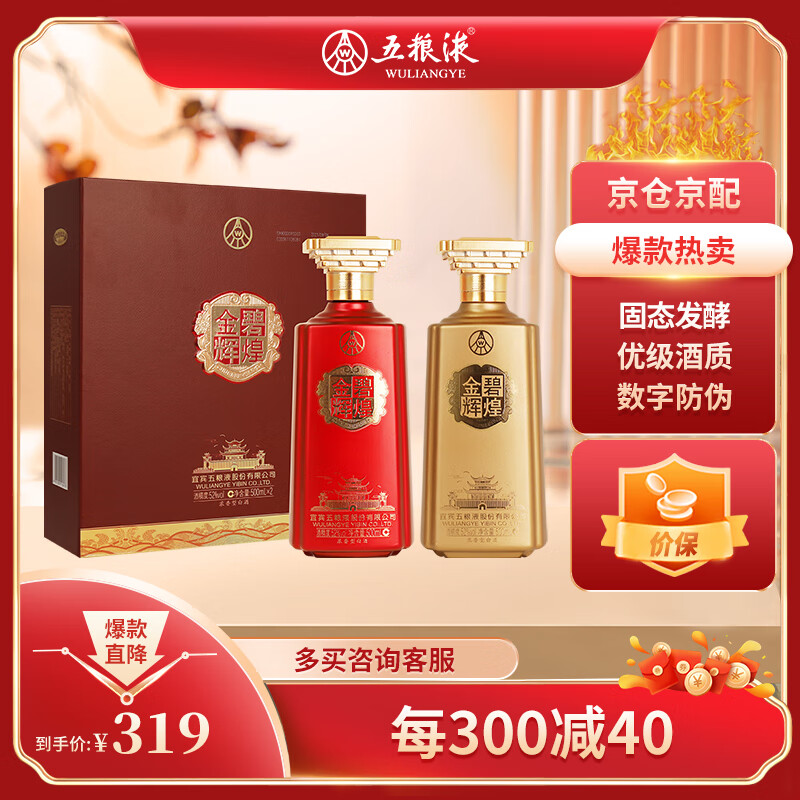 五粮液股份 金碧辉煌 名楼款 浓香型白酒 52度 500ml*2瓶 礼盒装 送礼价格:359.00元!