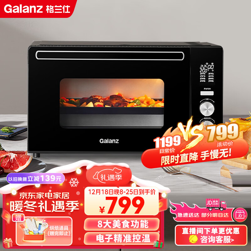 格兰仕(Galanz)42L家用多功能空气炸电烤箱 电子温控风炉烤箱精准控温 KF1842ELQ-S3N价格:999.00元!