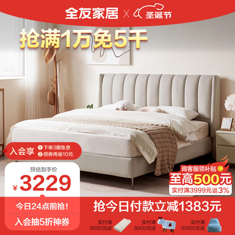 全友家居 床现代简约科技布床双人床主卧室1.8米舒适软靠家具105207CK价格:4612.00元!