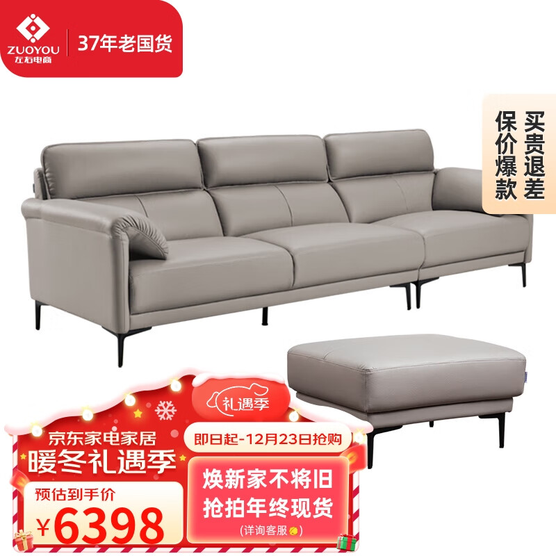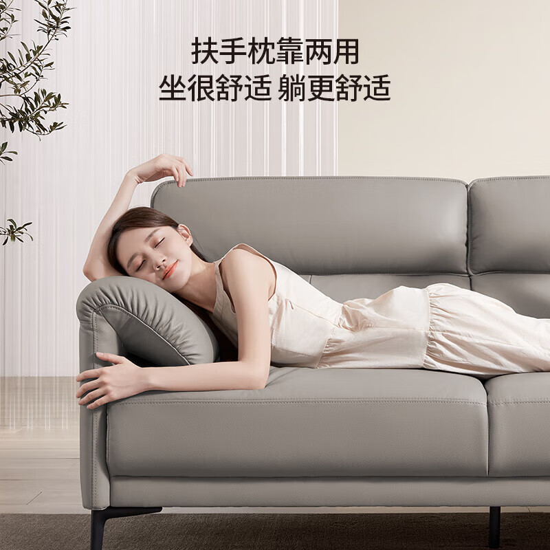 左右沙发现代简约头层牛皮沙发DZY5161三人位+脚踏【Z1012影青灰】价格:7648.00元!
