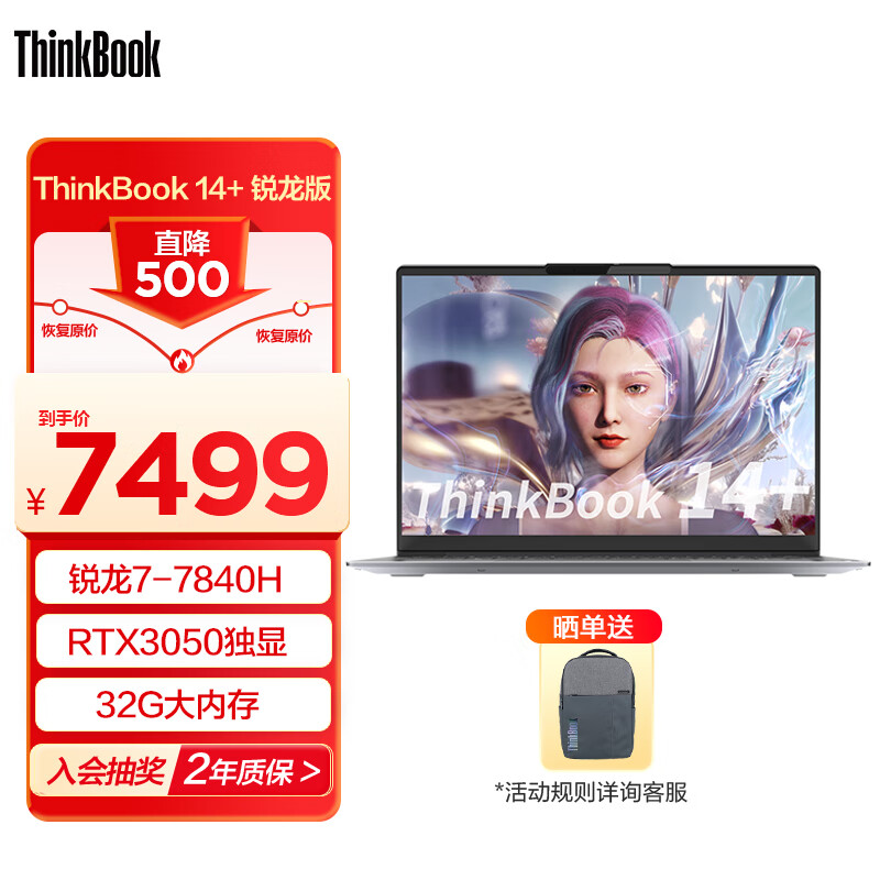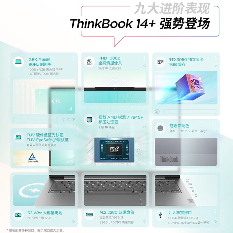 ThinkPad 联想ThinkBook 14+ 锐龙版标压 轻薄商务办公笔记本电脑 2023新品 R7-7840H 32G 1T 独显0DCD价格:7999.00元!