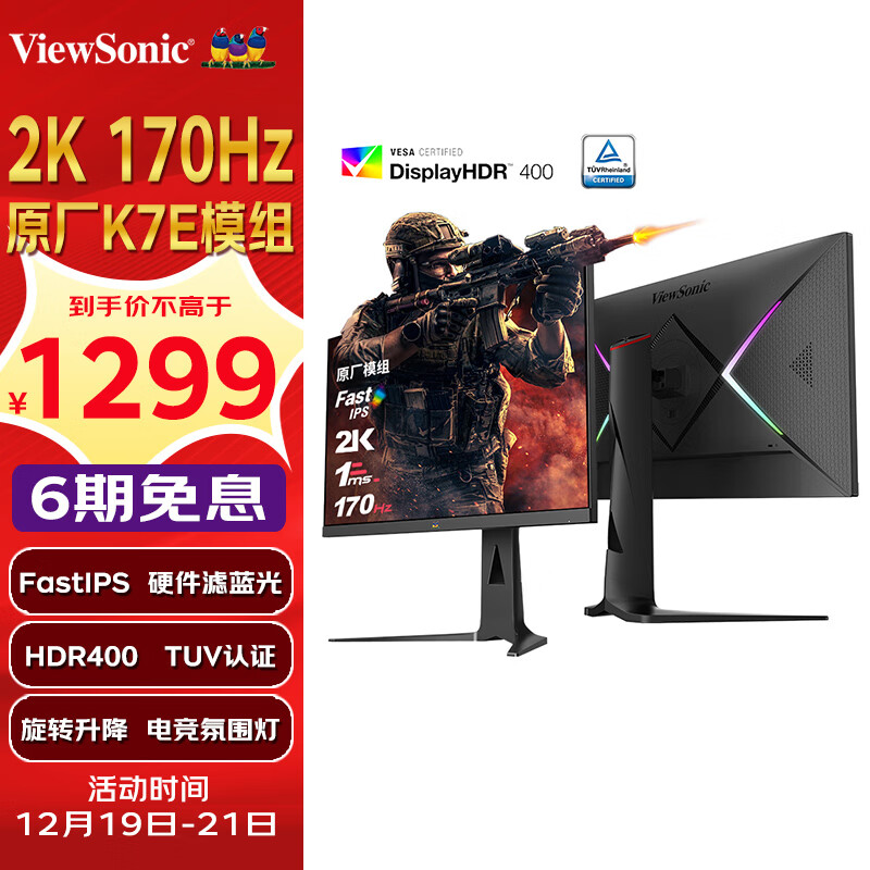 优派27英寸原厂背光 2K 170Hz FastIPS 1ms(GtG) HDR400 TUV认证 旋转升降 猛擎系列满血版电竞显示器VX2781价格:1599.00元!