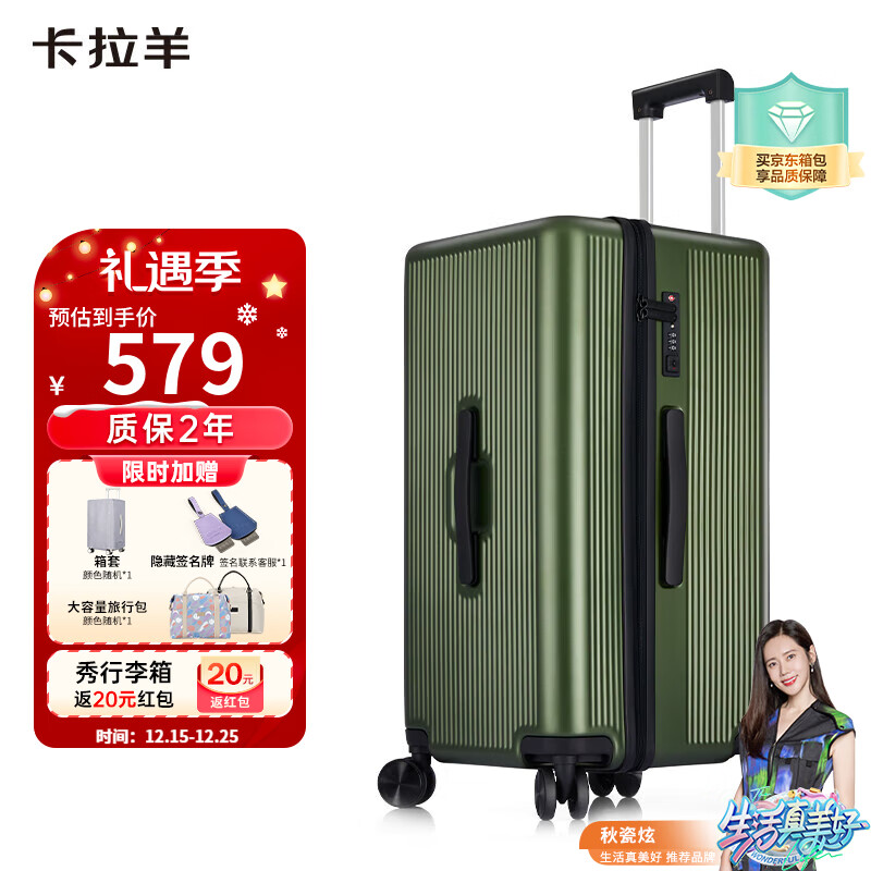 卡拉羊魔方体行李箱大容量26英寸巨能装拉杆箱男女旅行箱CX8110沙漠绿价格:679.00元!