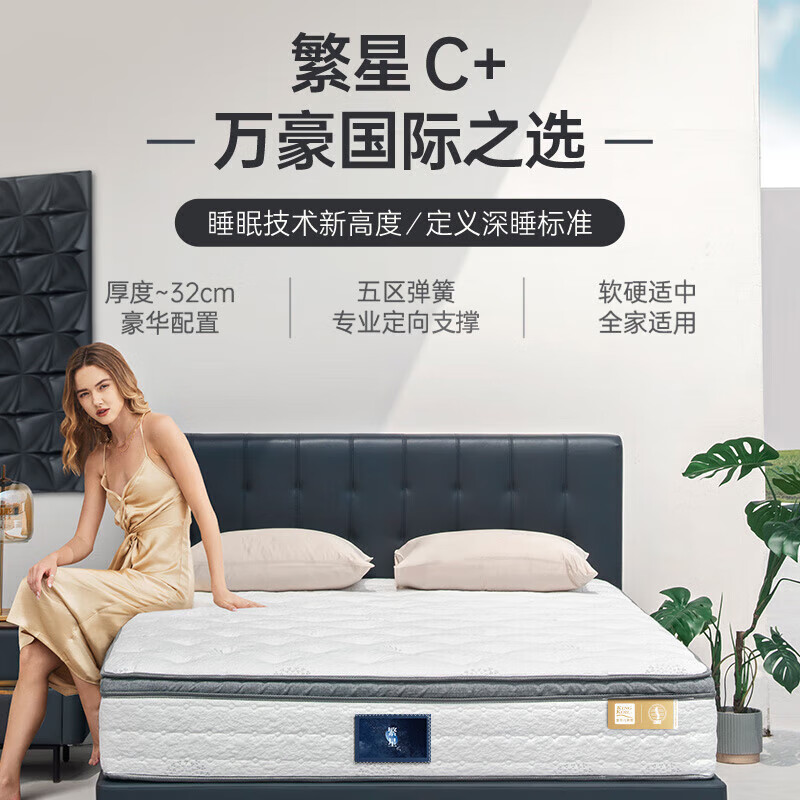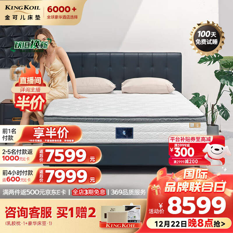 金可儿(Kingkoil)乳胶床垫五分区独立弹簧海绵床垫软硬适中繁星C+床垫1.5米*2米价格:8999.00元!