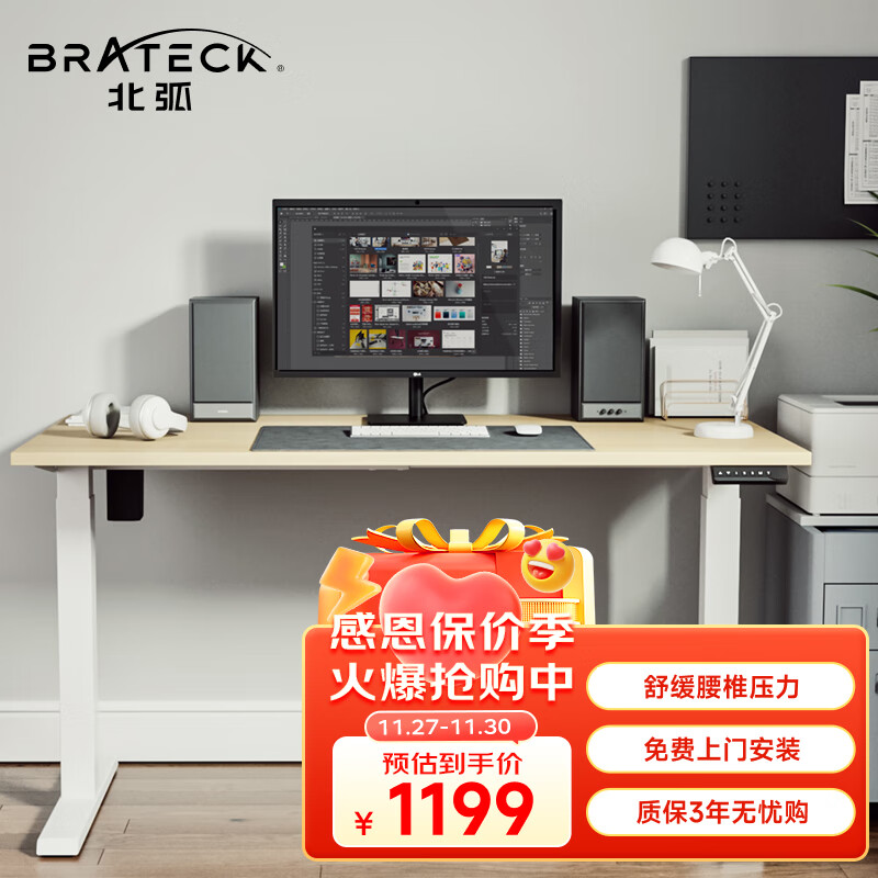 Brateck电动升降桌 北弧电脑桌 站立办公升降桌 工作升降台 K33黄1.5米价格:1499.00元!