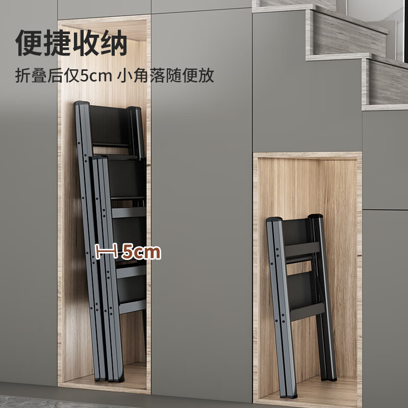 3、产品材质:铝合金材质,质量很好,很结实耐用。承重能力:踏板宽度合适,踩上去很舒服,不会感到狭窄。外形外观:外观红色,好看,做工精良,折叠式的梯子,很方便。体积大小:大小合适,不占地方,很好收纳,五步梯子,柜子顶部都够得着了,放东西拿东西太方便了,非常满意,一次愉快的购物。
