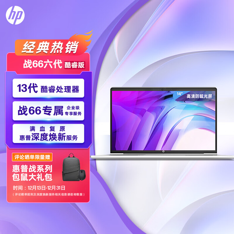 惠普(HP)战66 六代 2023酷睿14英寸轻薄本笔记本电脑(英特尔13代i5-1340P 16G 512G 长续航 指纹识别 AI新体验高性能)价格:4299.00元!
