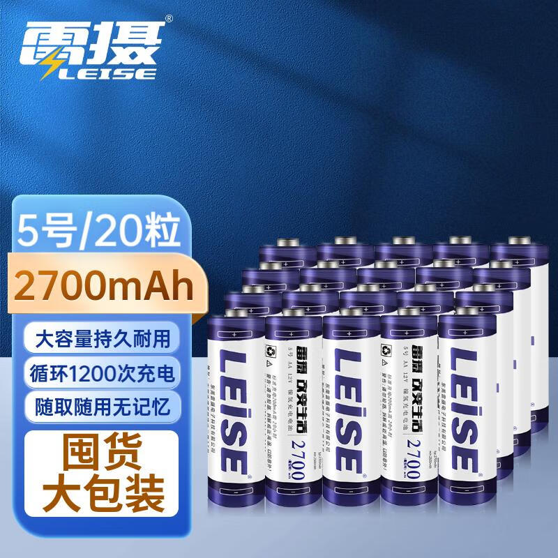 雷摄(LEISE)高容量镍氢充电电池 5号/五号/AA/2700毫安(20节)电池盒装 适用:麦克风/玩具/鼠标(不含充电器)价格:219.00元!