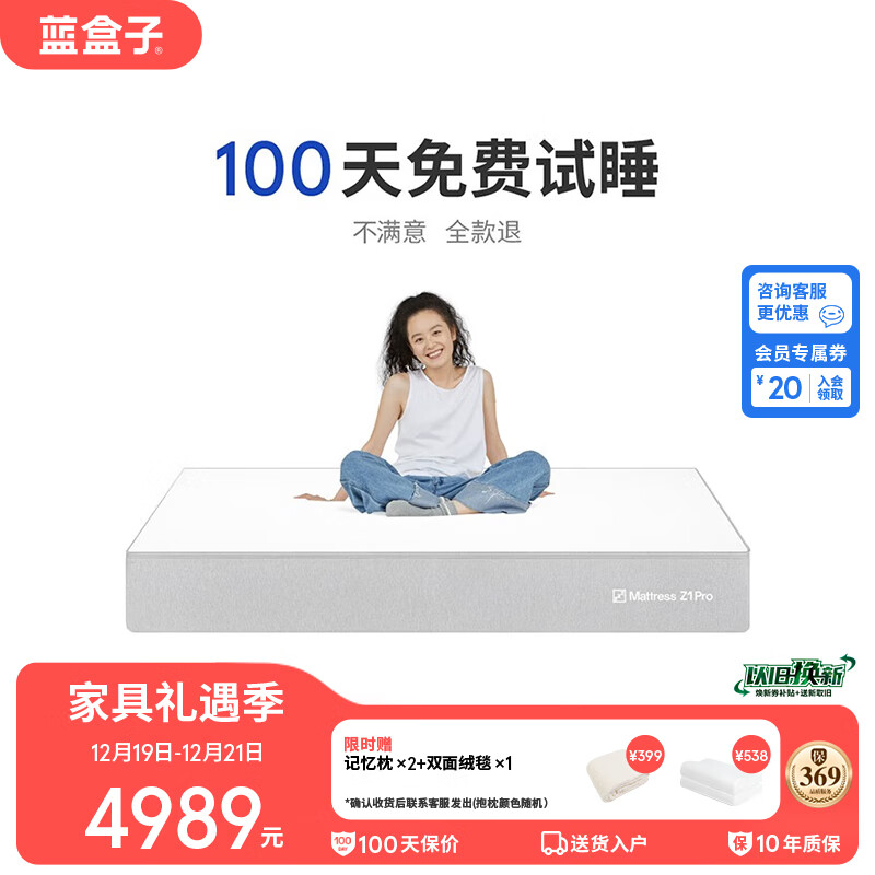蓝盒子Z1Pro郭采洁推荐低抗力弹簧床垫家用双人五星酒店 150*200cm价格:7049.00元!