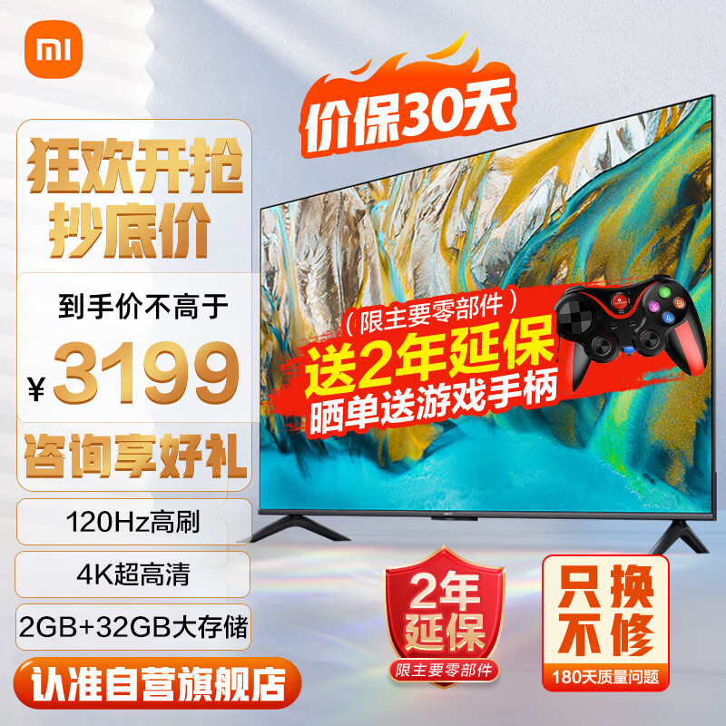 小米(MI)电视A75 竞技版 75英寸 120Hz高刷 2+32GB大存储 4K液晶平板电视机L75MA-AC[本地仓直发]价格:3199.00元!