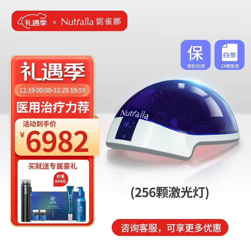 Nutralla妮雀娜 小蓝生发帽 256颗激光生发仪 红光头皮护理增发密发生发头盔 固发生发帽 蓝色价格:8680.00元!