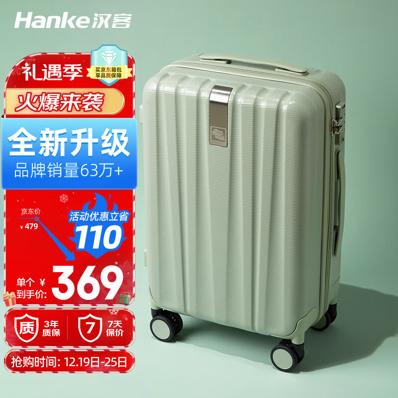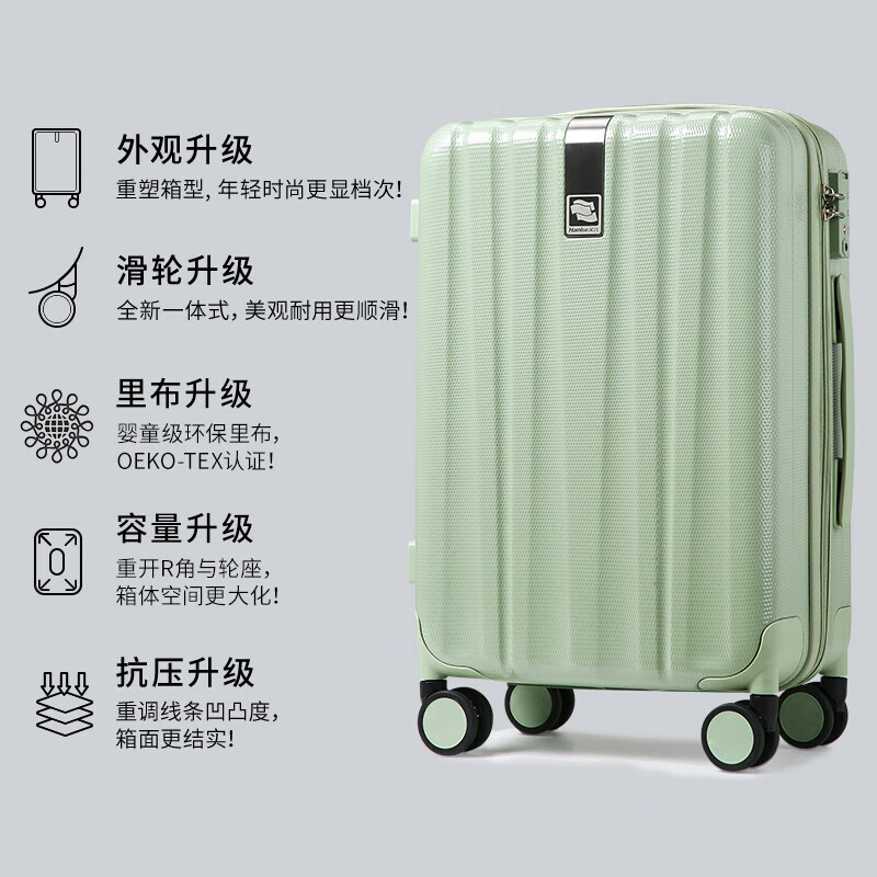 汉客行李箱男拉杆箱女旅行箱50多升大容量22英寸青竹绿密码箱再次升级价格:479.00元!