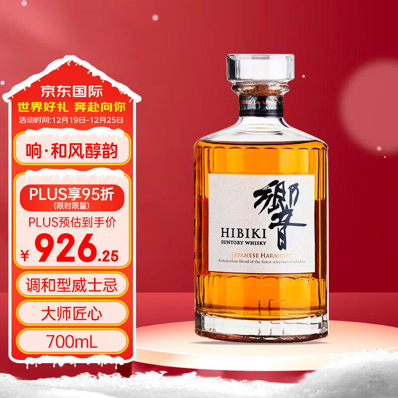 响(Hibiki)和风醇韵 调和型威士忌 700ml 三得利 日本威士忌 原装进口洋酒价格:975.00元!