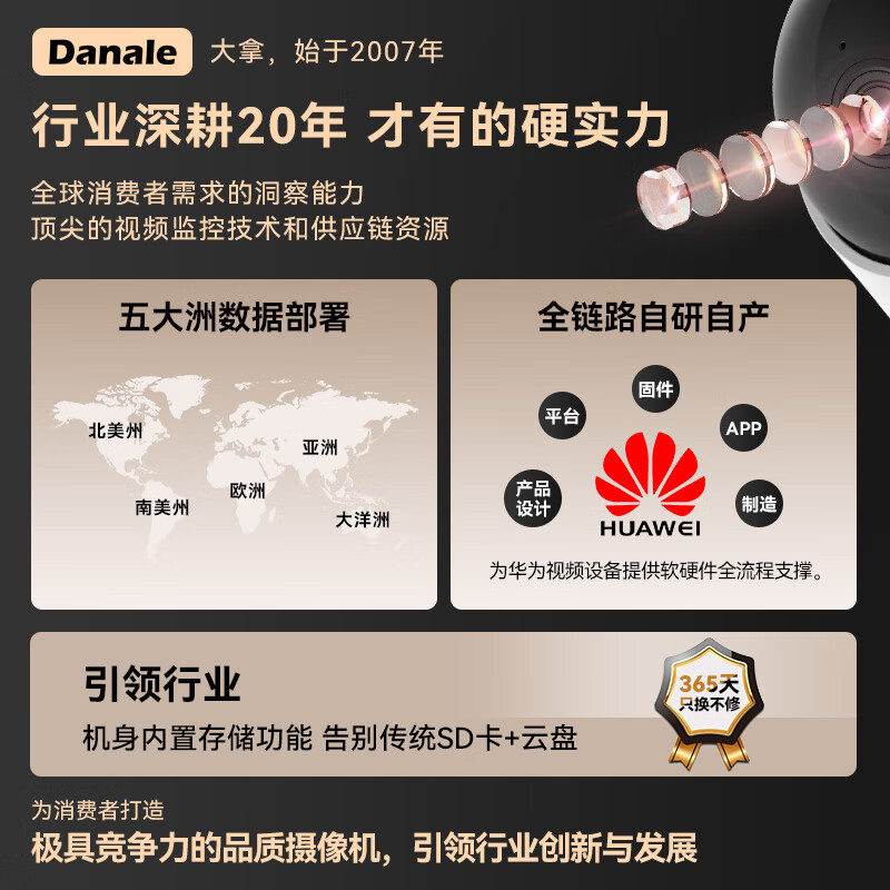 4、大拿智能摄像机,800万像素,微光全彩设计,一开始还担心画质不清晰,买回来就开始用,效果挺好的,360度全景,可以随意调整视角,看到家里的情况,很好用,值得推荐。