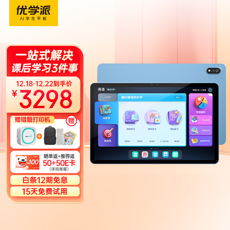 优学派AI护眼学习机U86 8+128G 中英作文批改 1对1AI学习规划 11英寸网课机 学生平板电脑全龄段英语价格:3298.00元!
