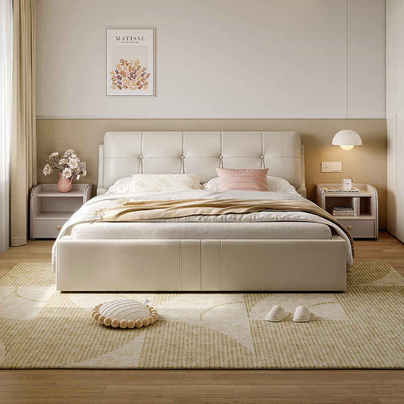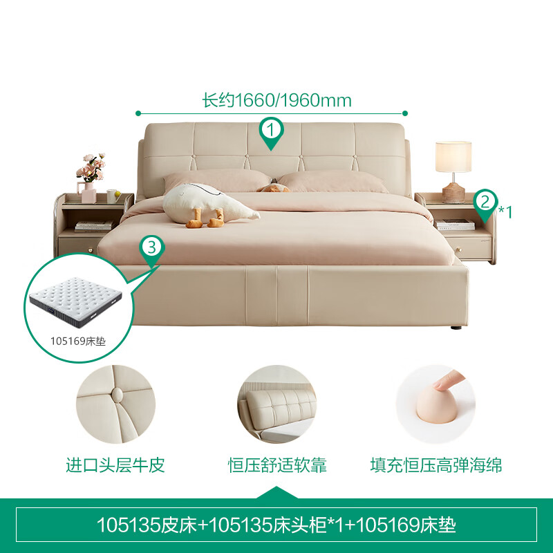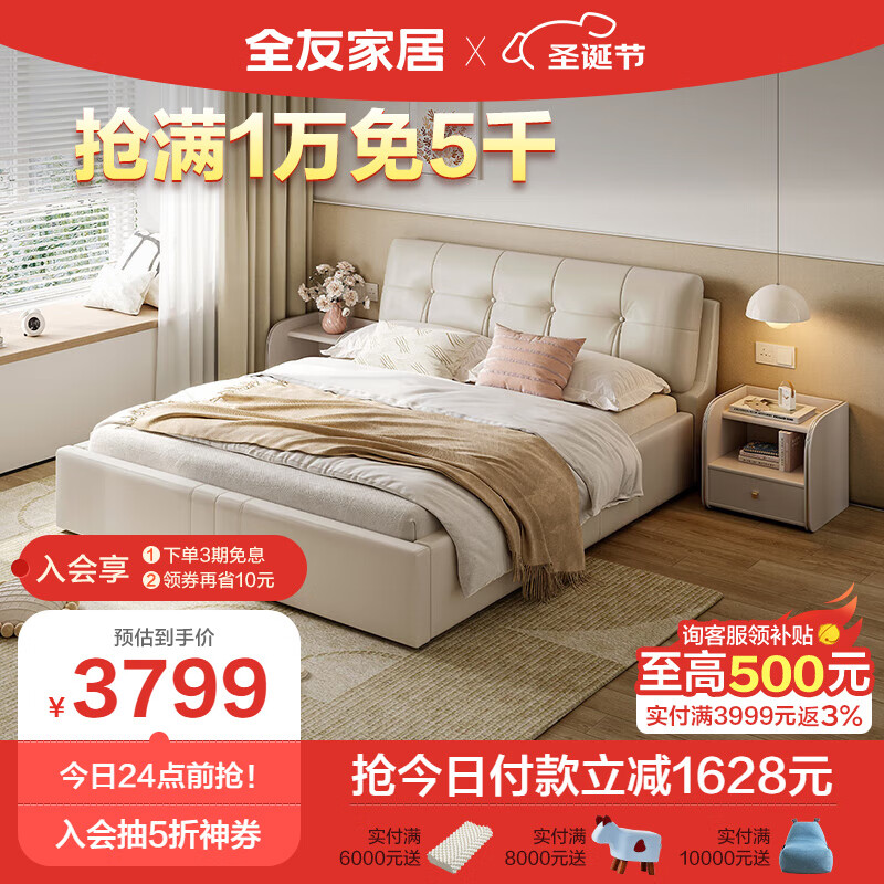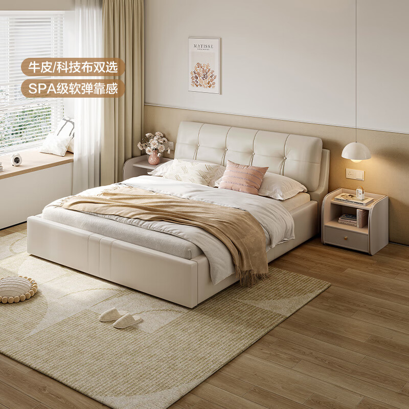 全友家居 皮艺双人床 轻奢风头层牛皮床小户型卧室1.8米婚床105135价格:5427.00元!