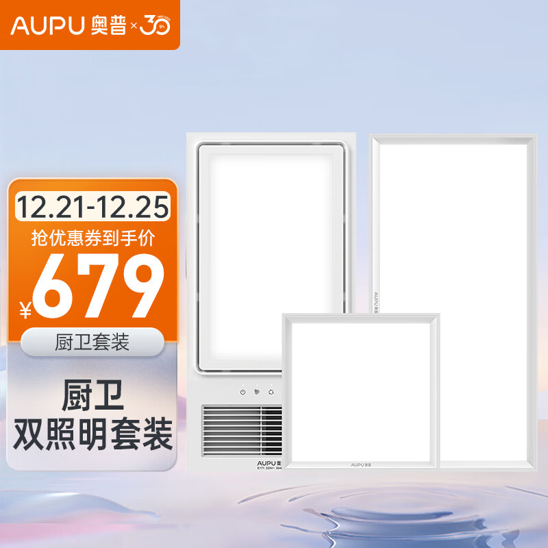 奥普(AUPU)浴霸E371风暖触控智能换气浴霸+长灯+方灯照明套装(附件形式)价格:999.00元!